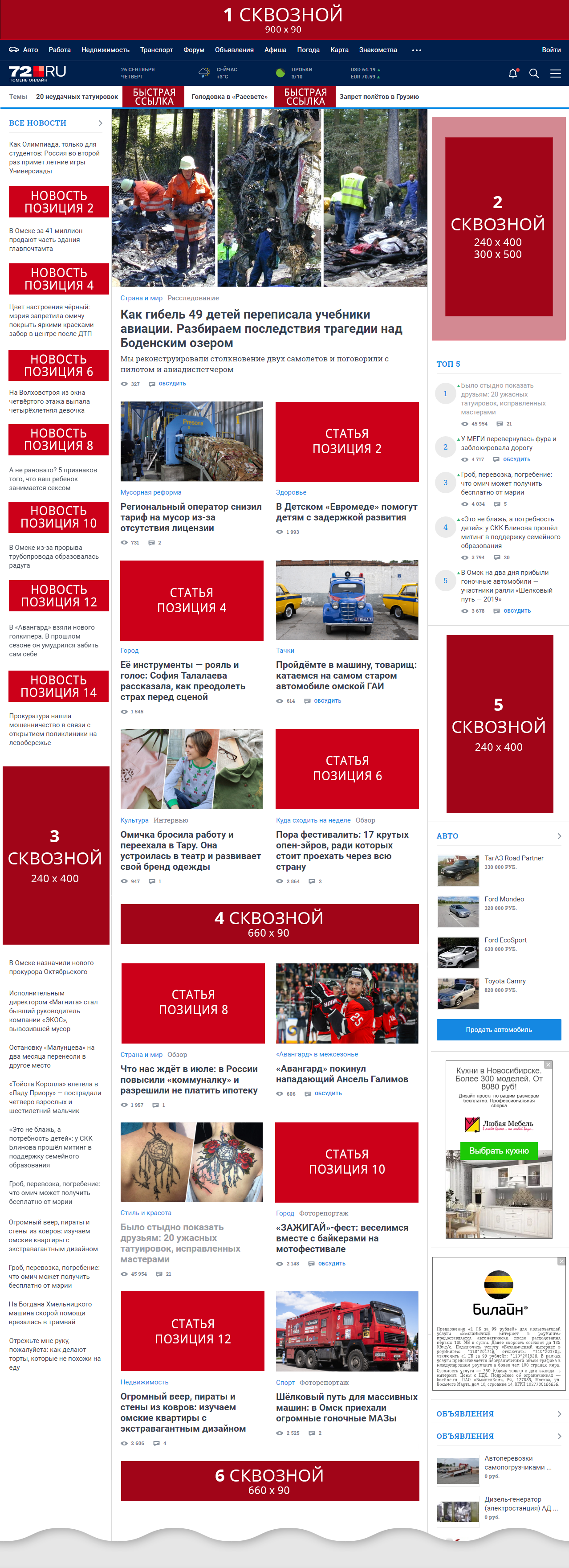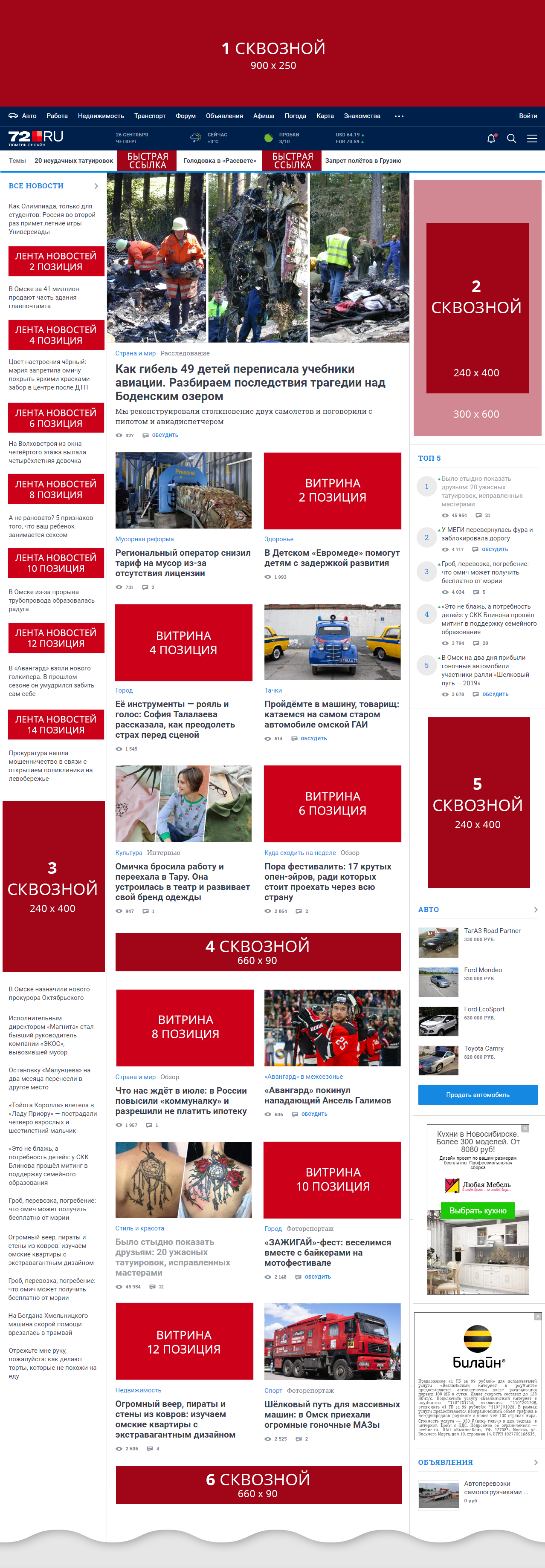 Сквозной в новостные рубрики и мобильную версию. Размер баннера для мобильной версии: 300*250 пикселей.